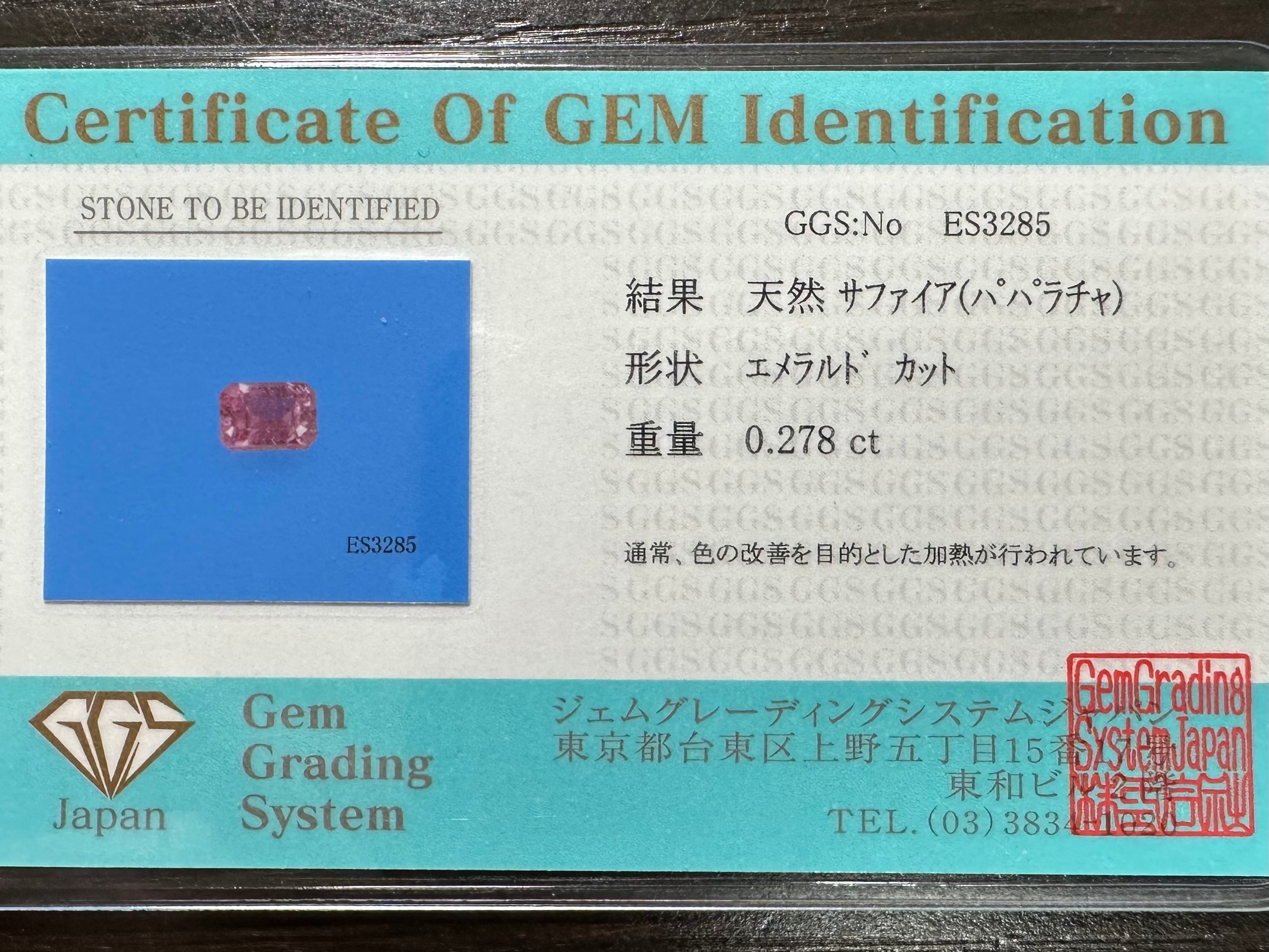 1350.パパラチャサファイア(GGS鑑別カード付)【ルース】