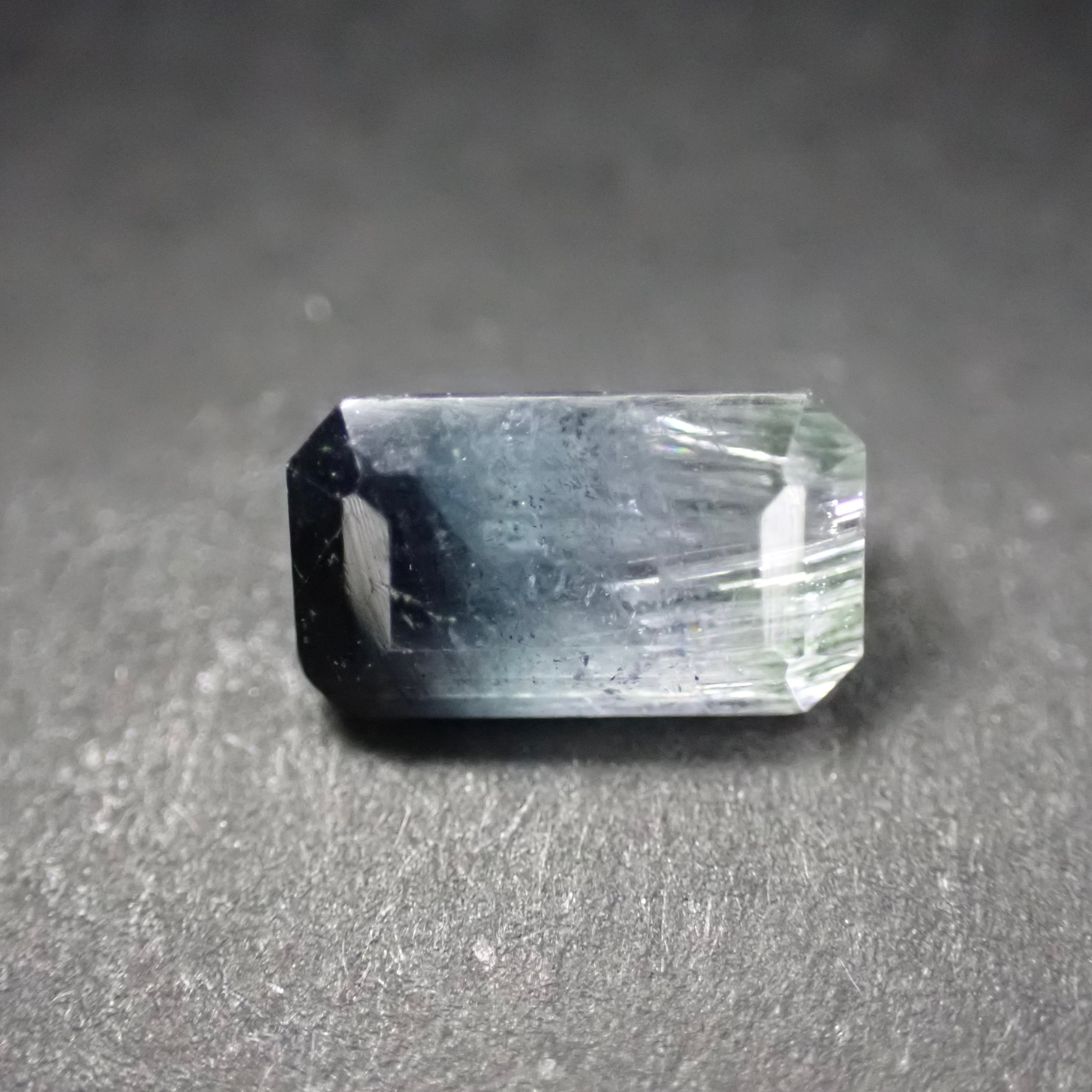 黒に近い深い紺色とホワイトが対照的に現れた、印象的なバイカラートルマリン。