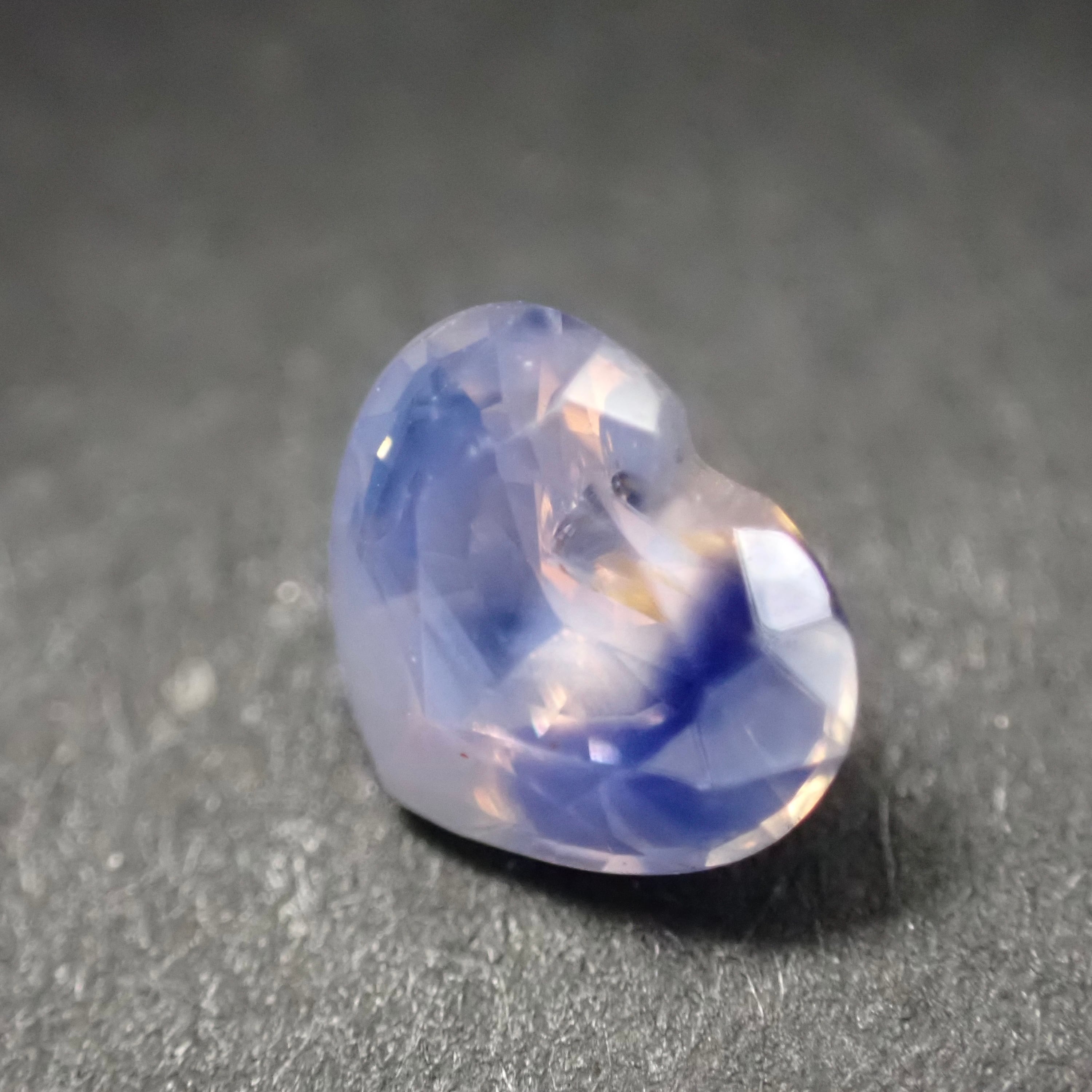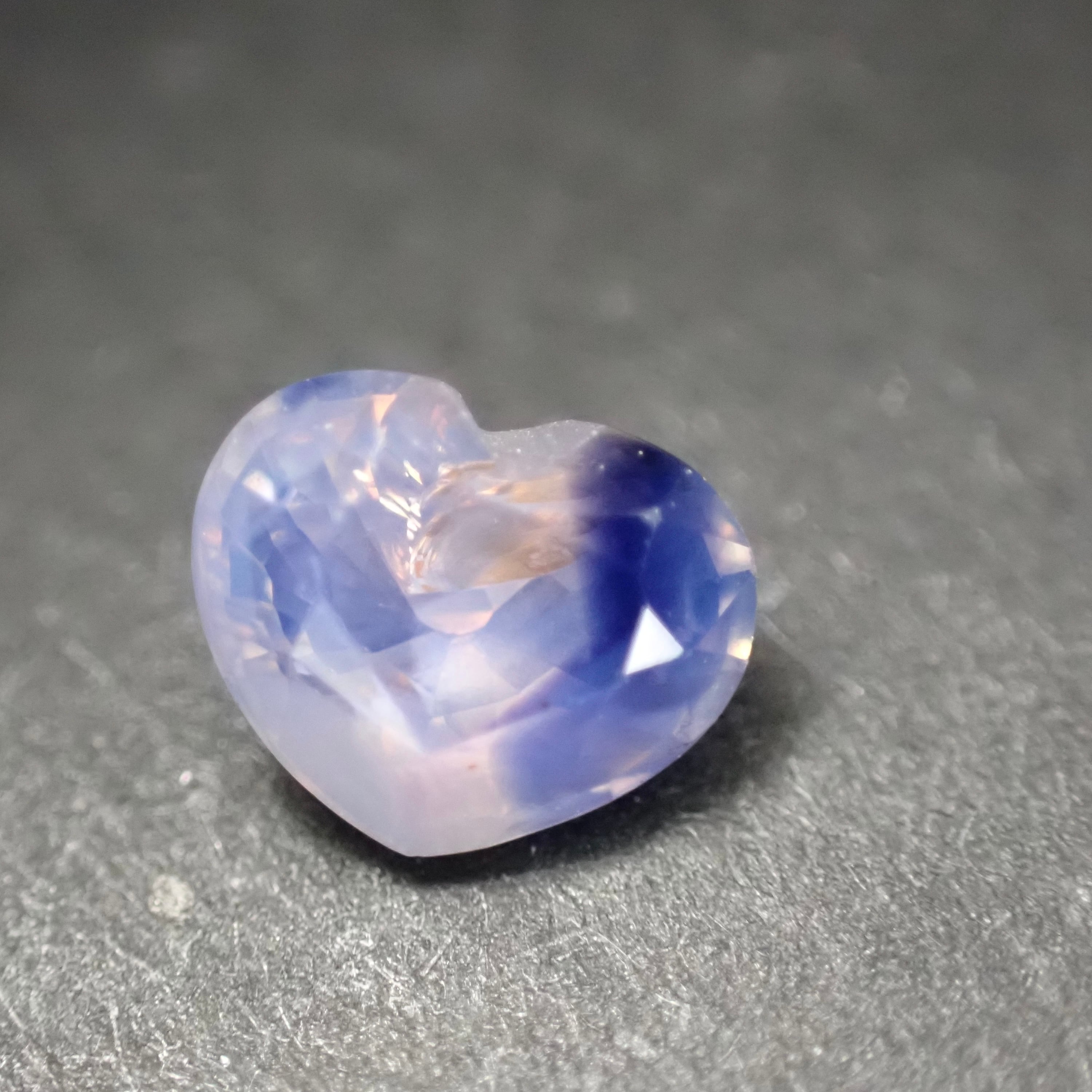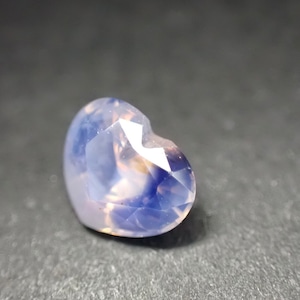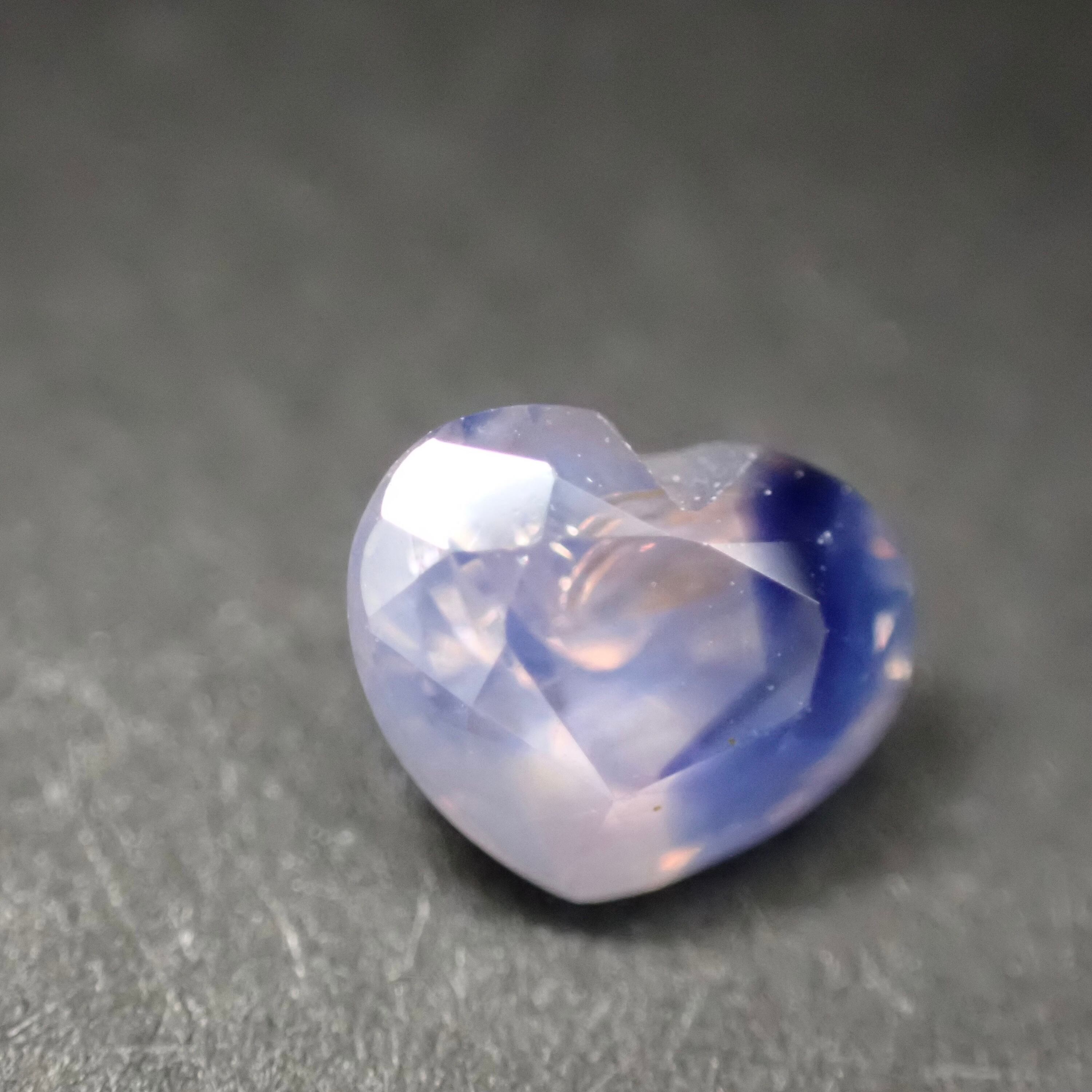 淡いピンクのシルキーな輝きに、ハートの右側からはっきりとブルーが現れる一石。