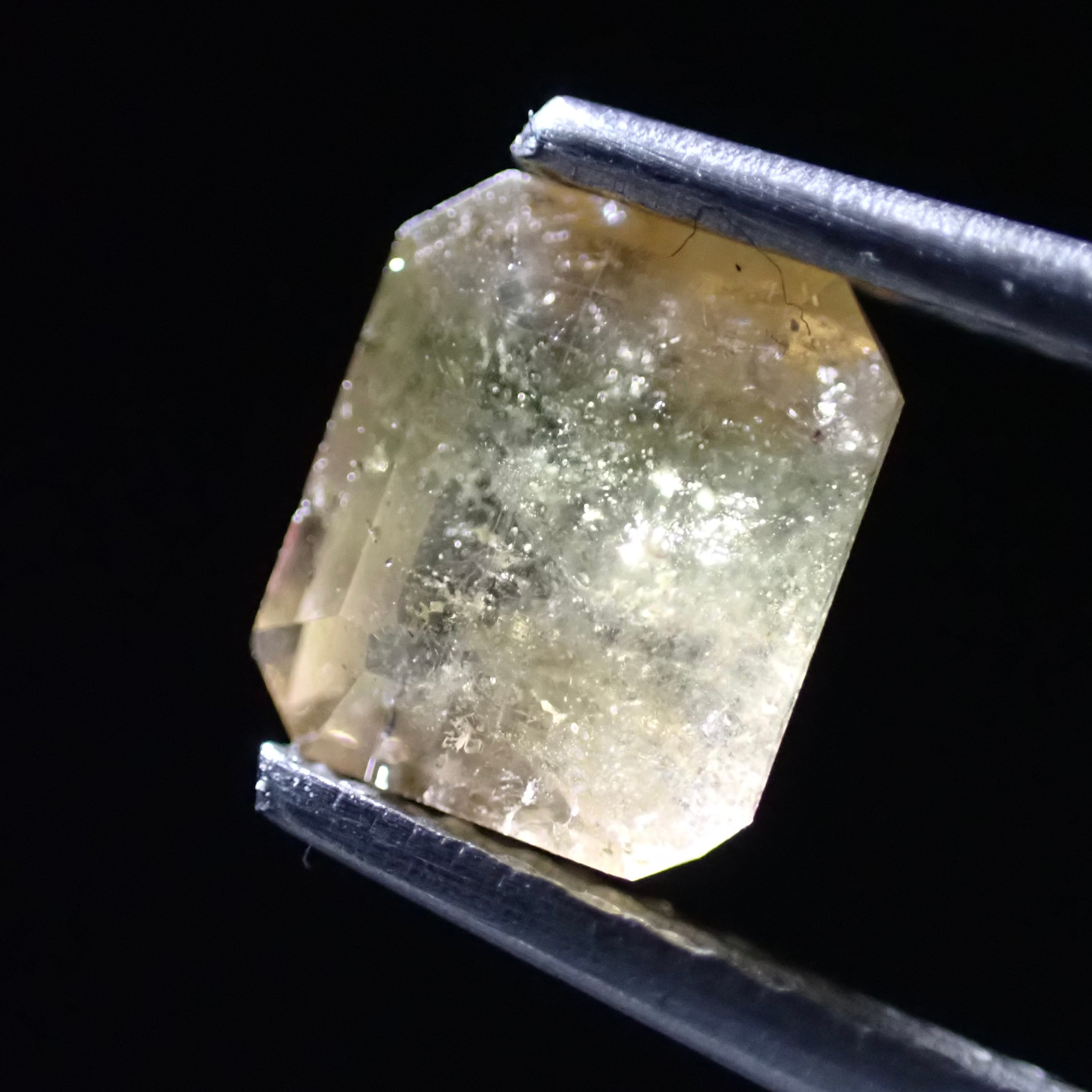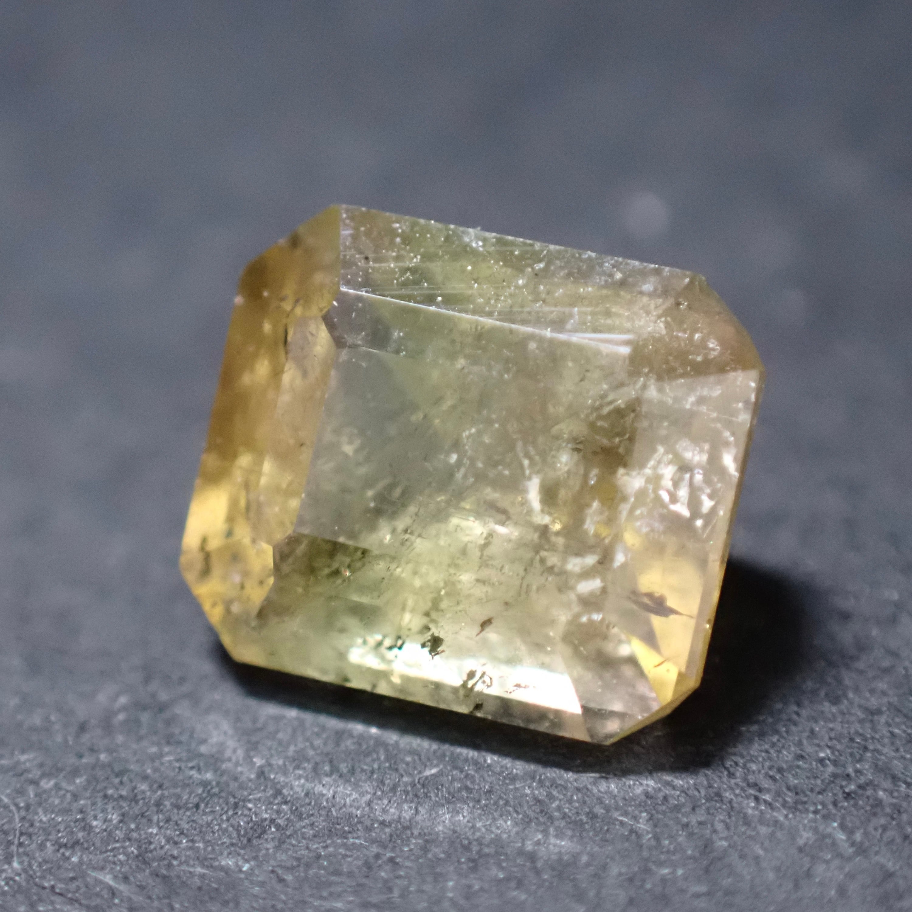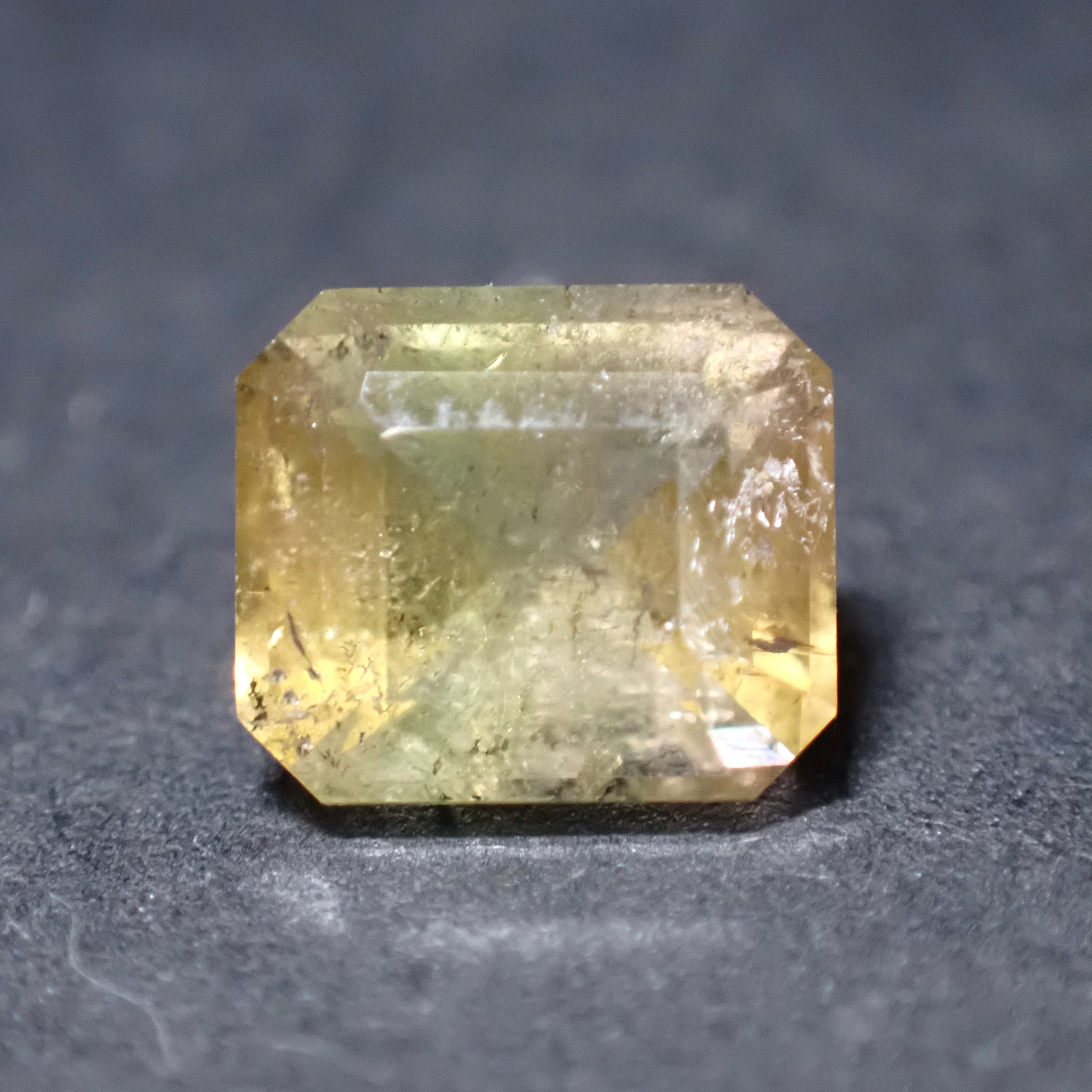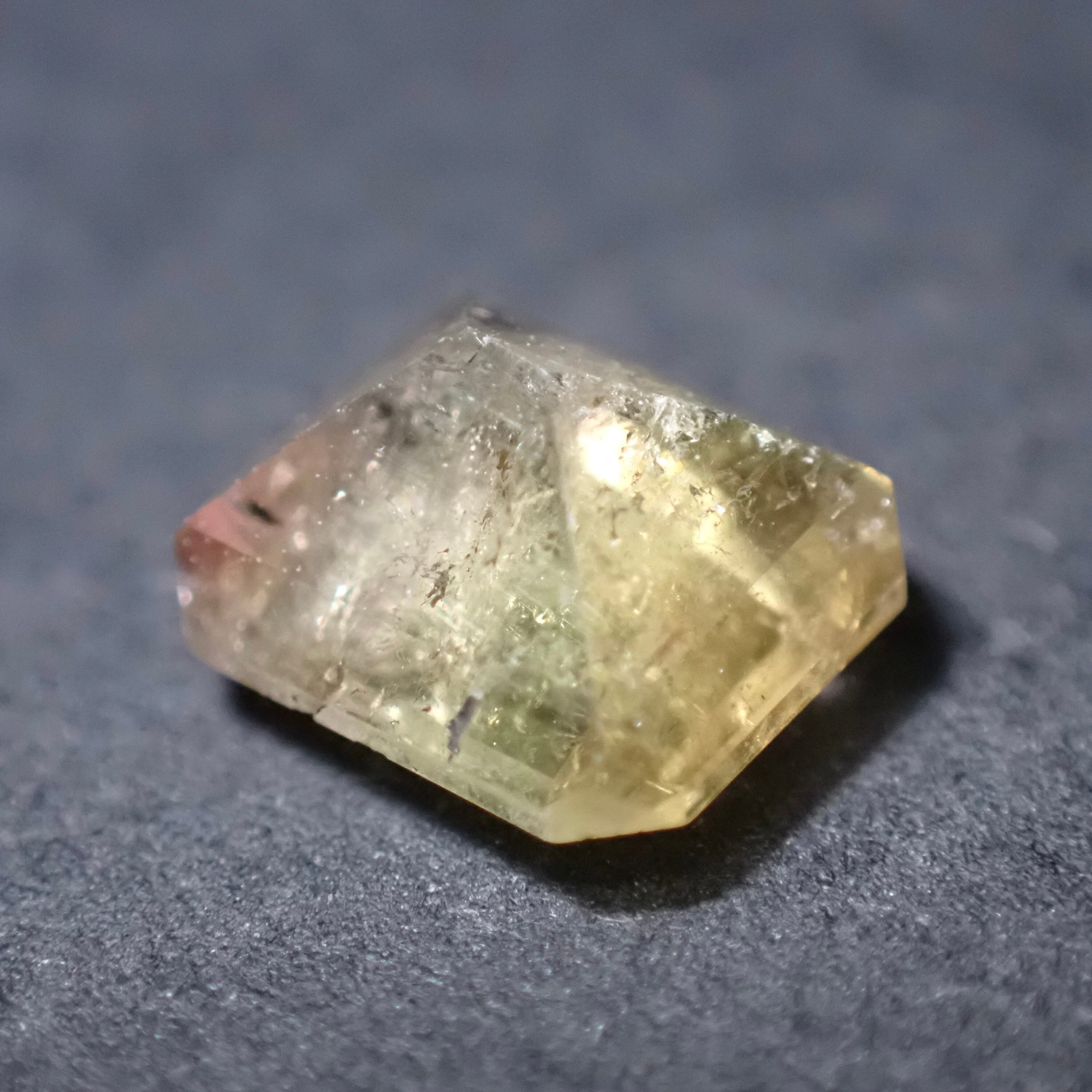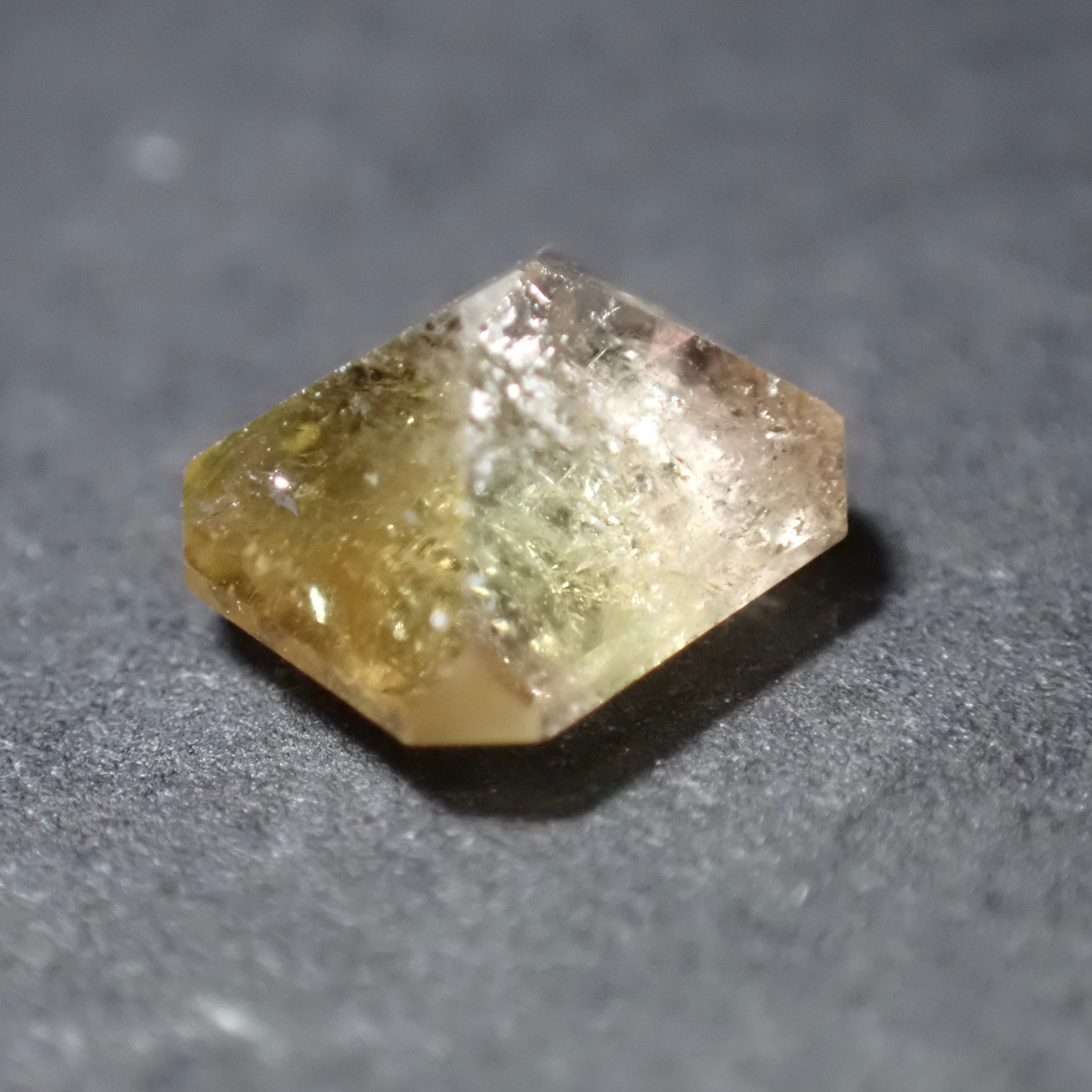イエローの中に薄いイエローやオレンジが見えるバイカラートルマリン。