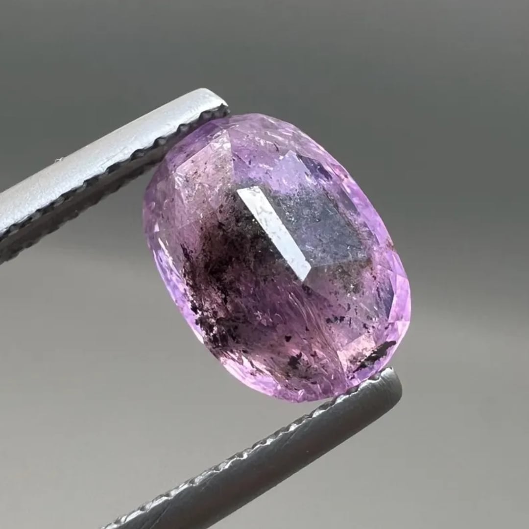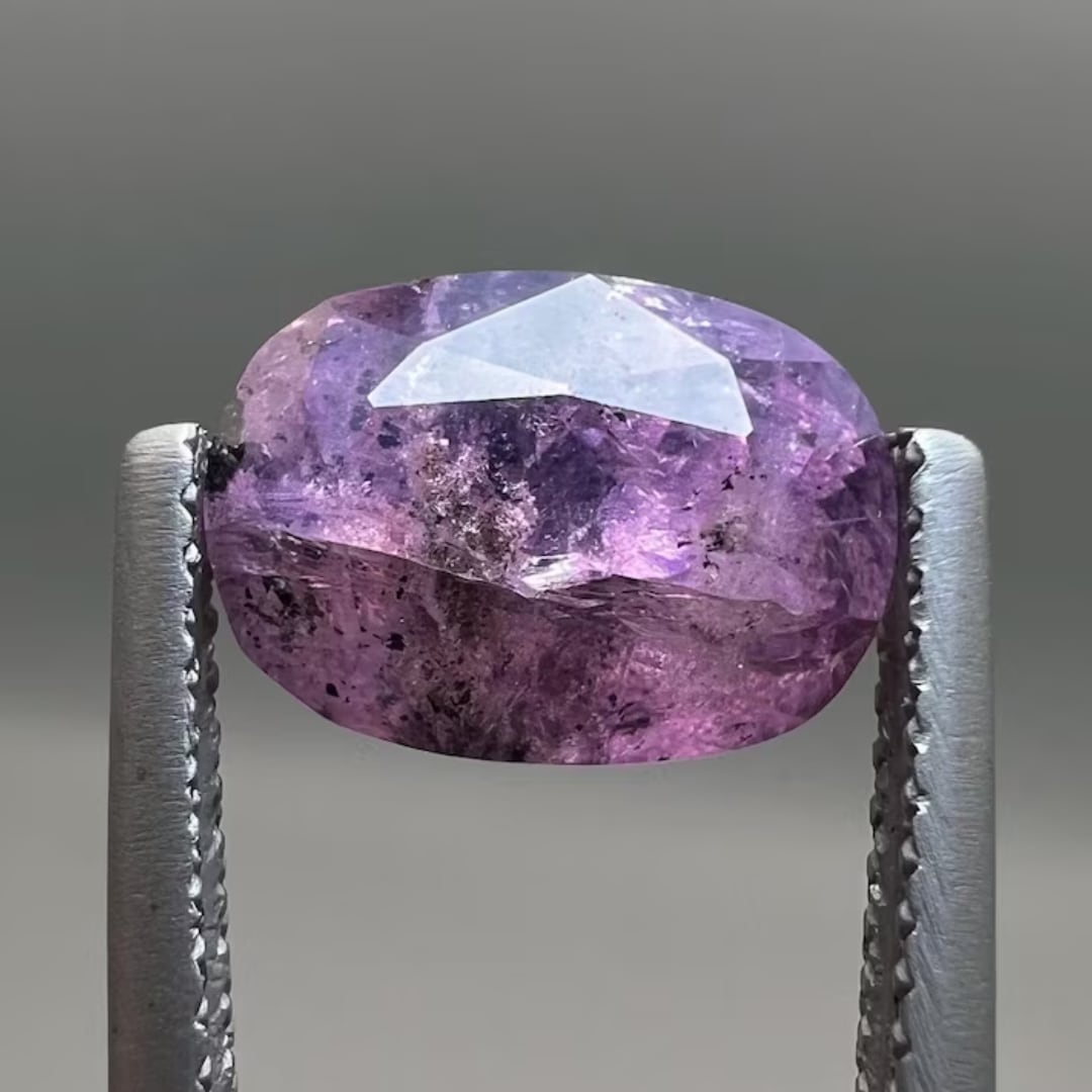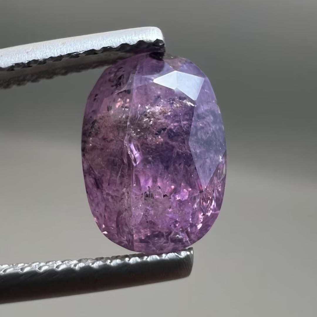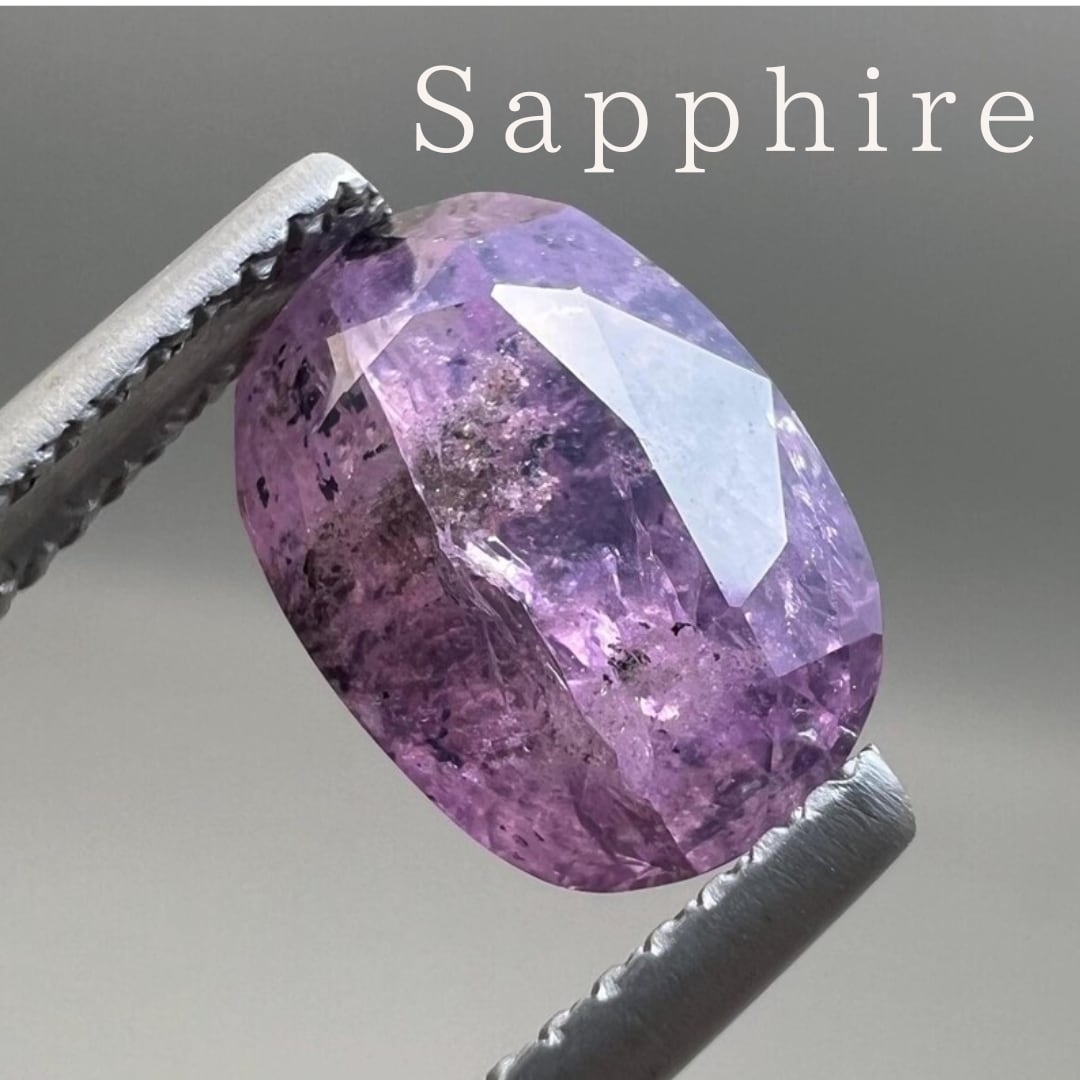 内包物たっぷりのパープルサファイア。