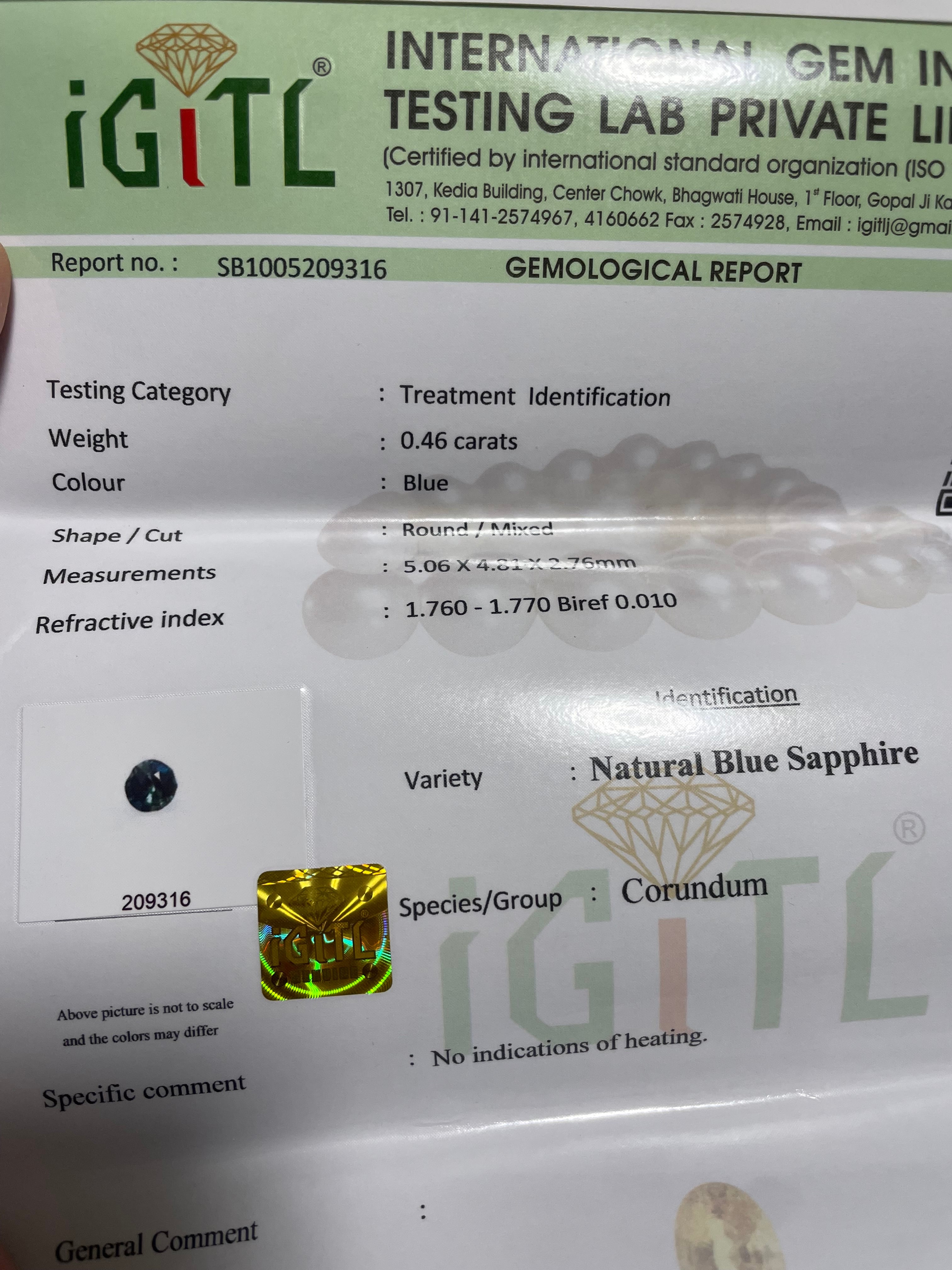 ティールサファイア【1443】鑑別書付