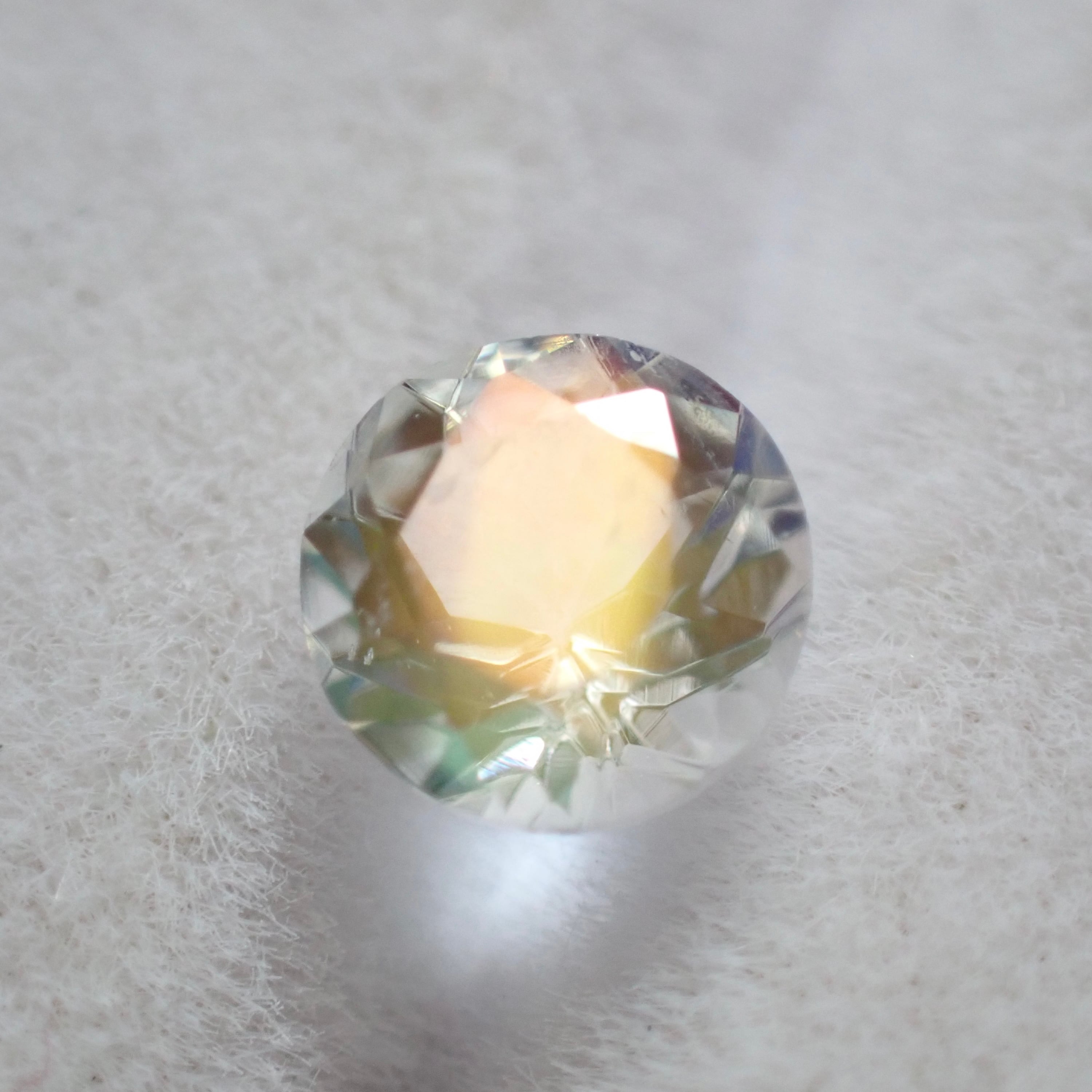 オレンジをメインに、イエロー、ブルー、パープルが重なって見えるインド産のアンデシンラブラドライトです。