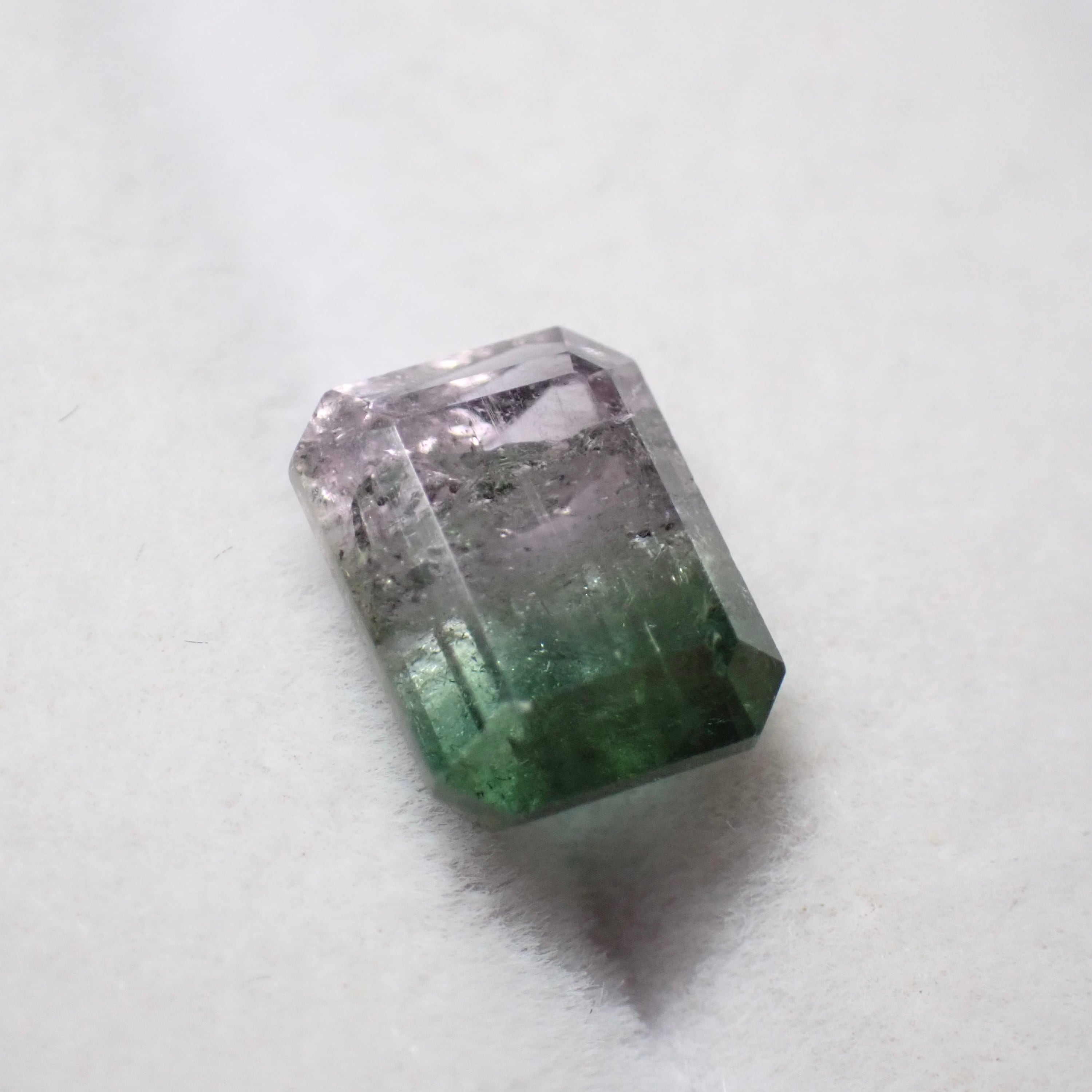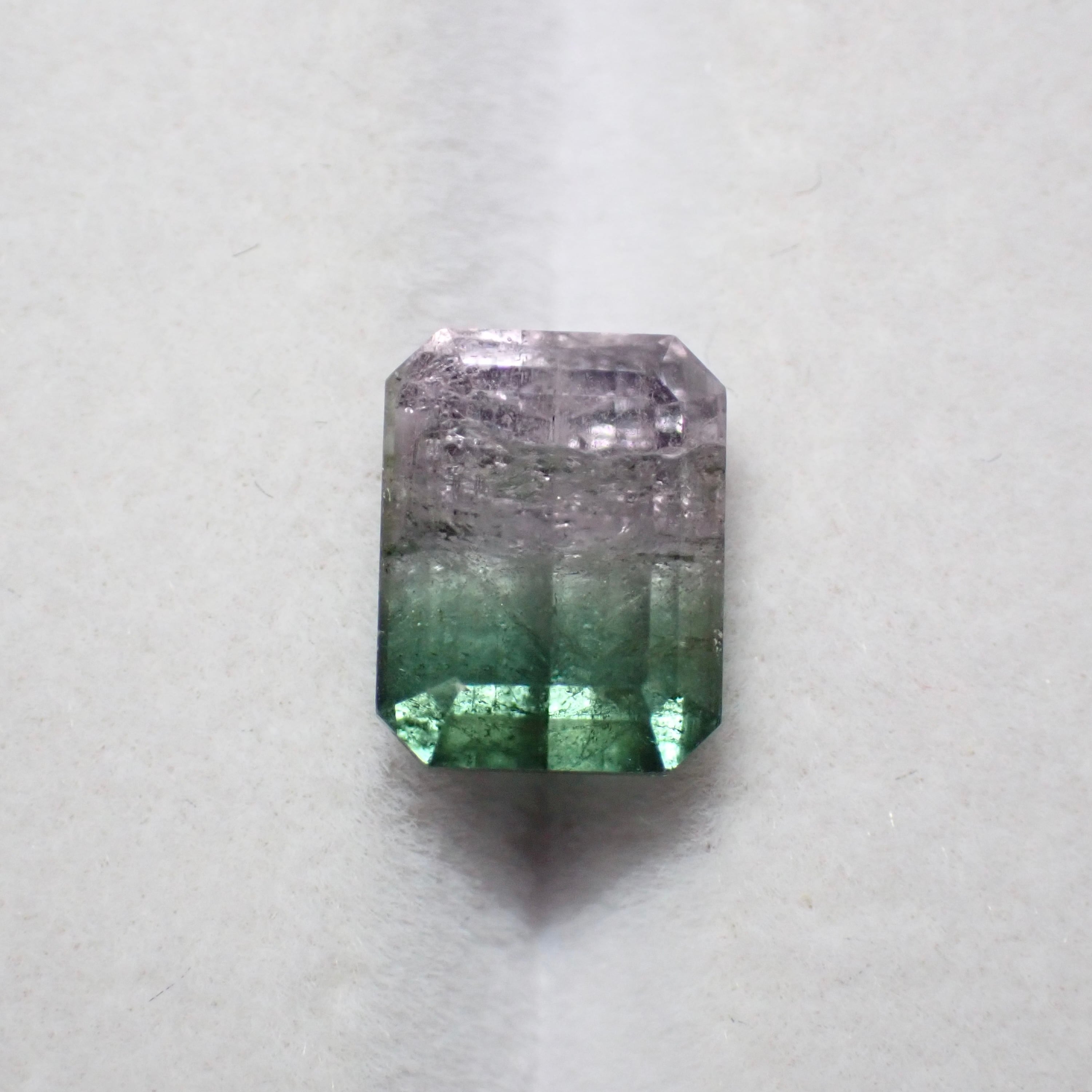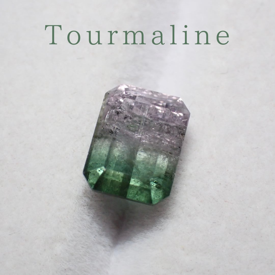 グリーンと薄ピンクが並ぶやわらかな色合いのバイカラートルマリン。