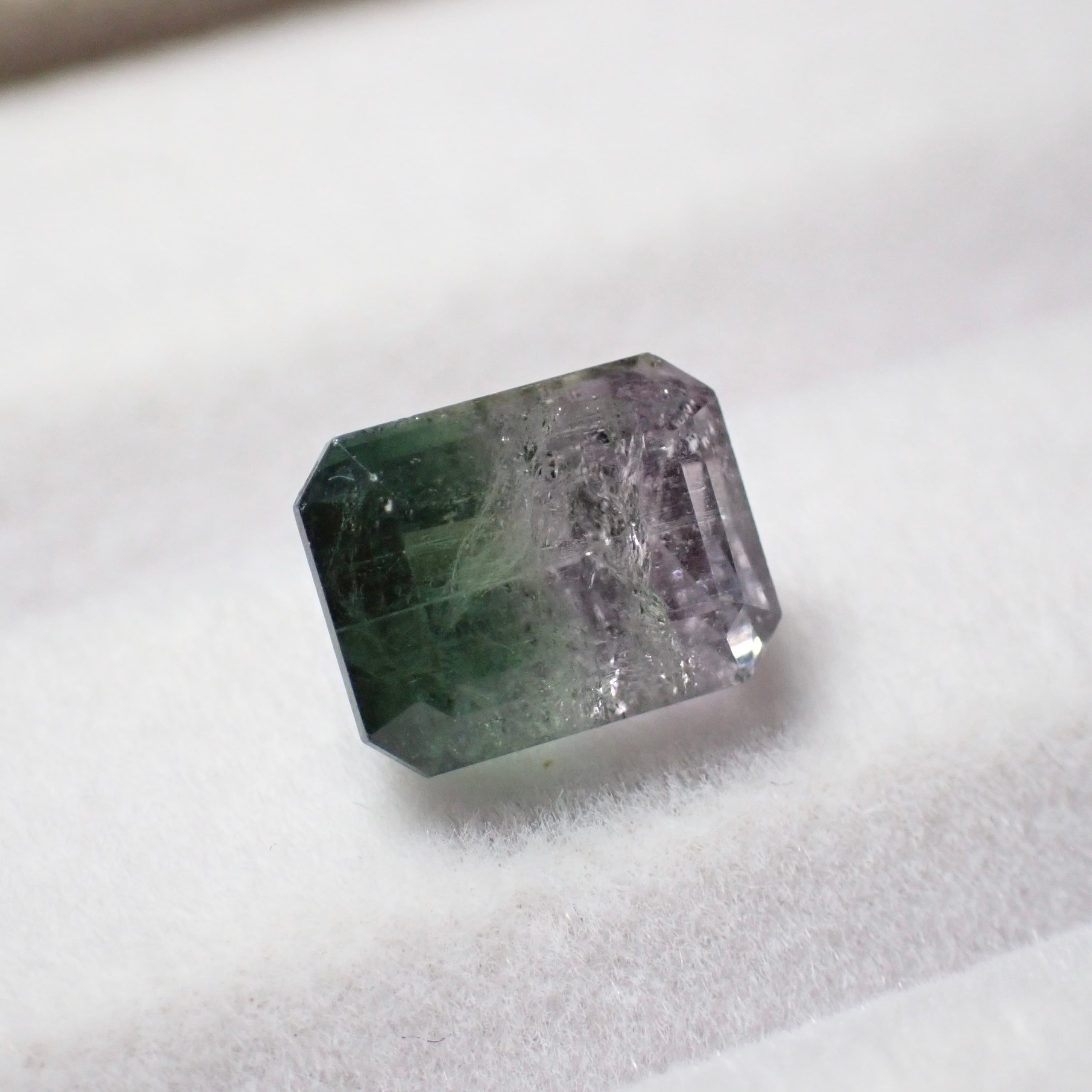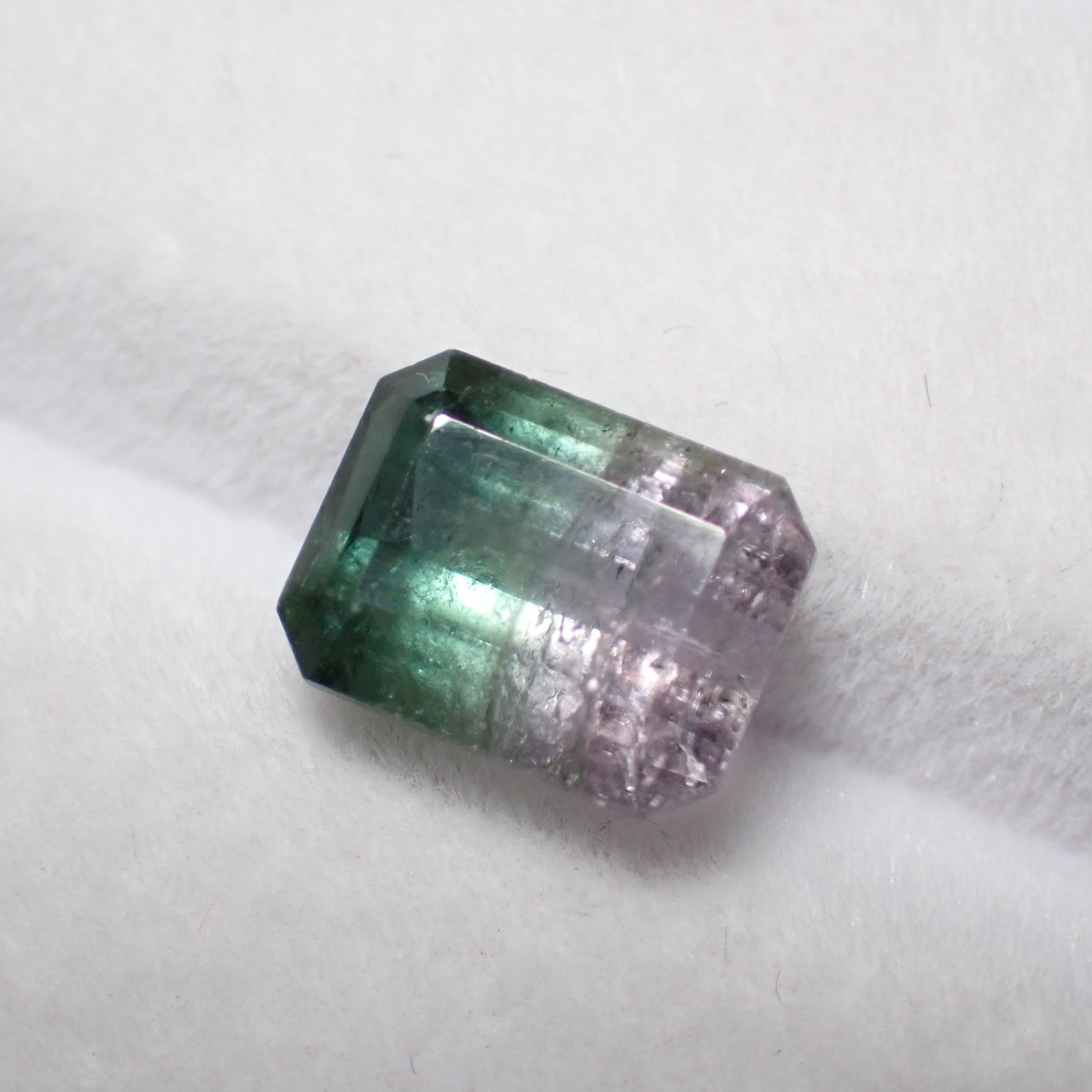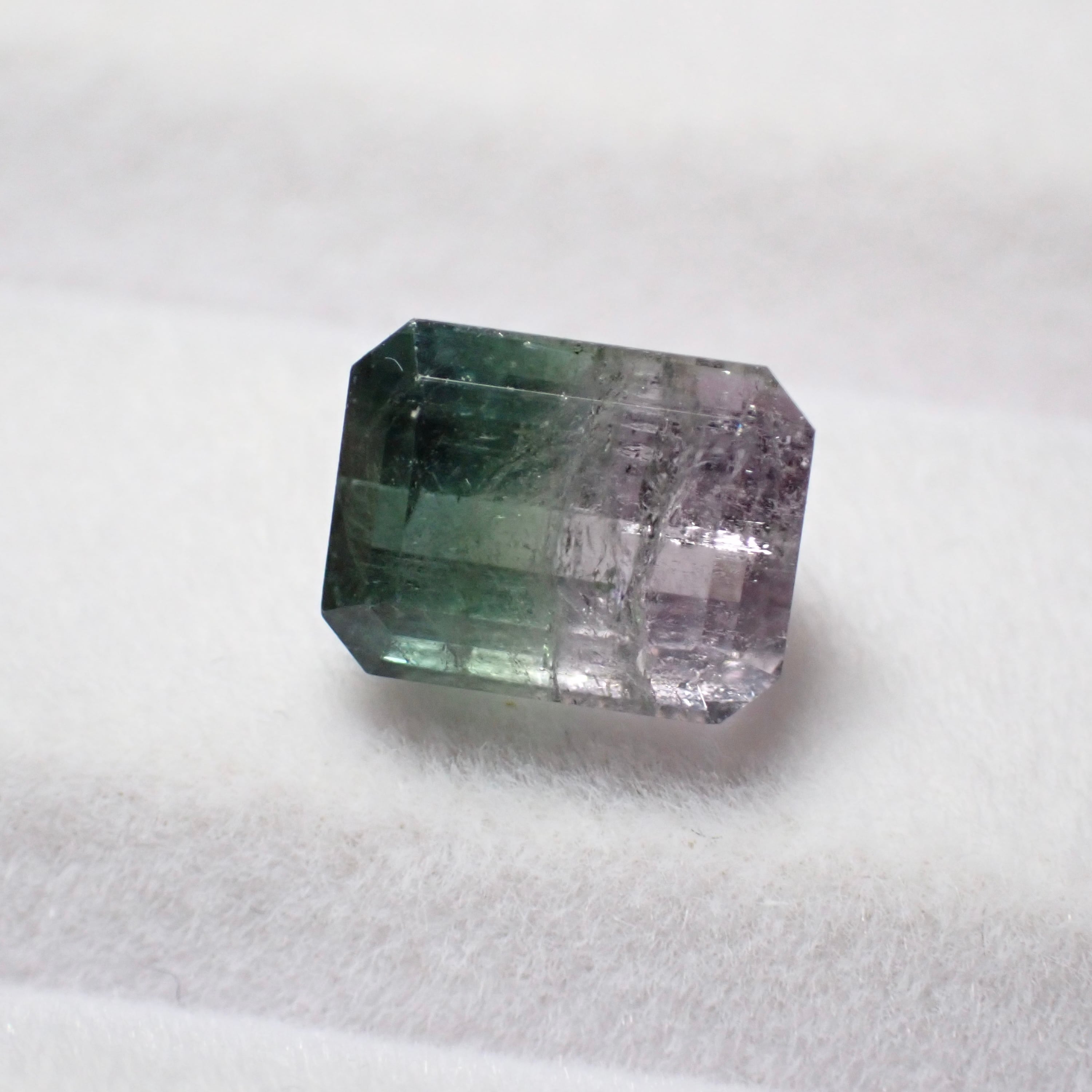 グリーンと薄ピンクが並ぶやわらかな色合いのバイカラートルマリン。