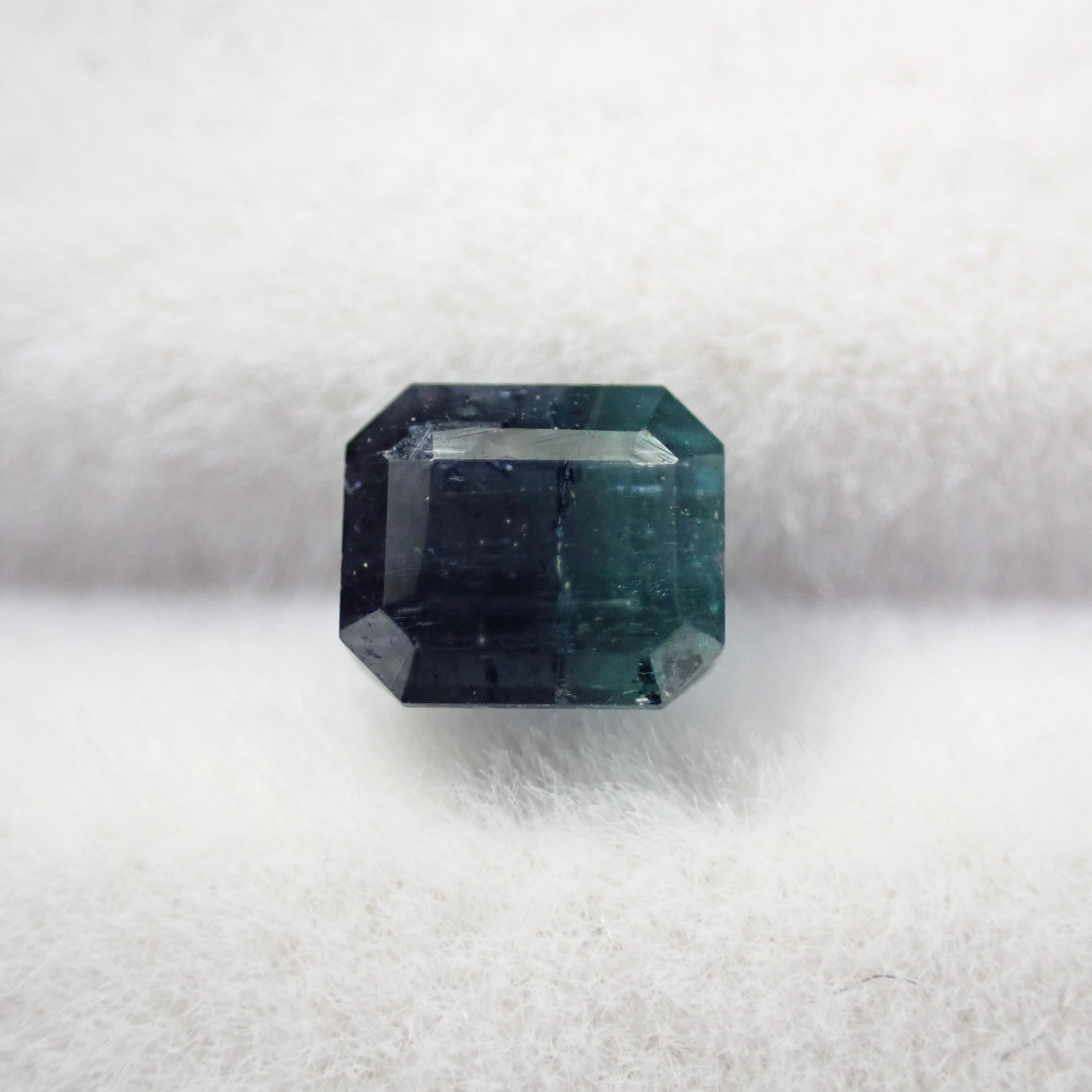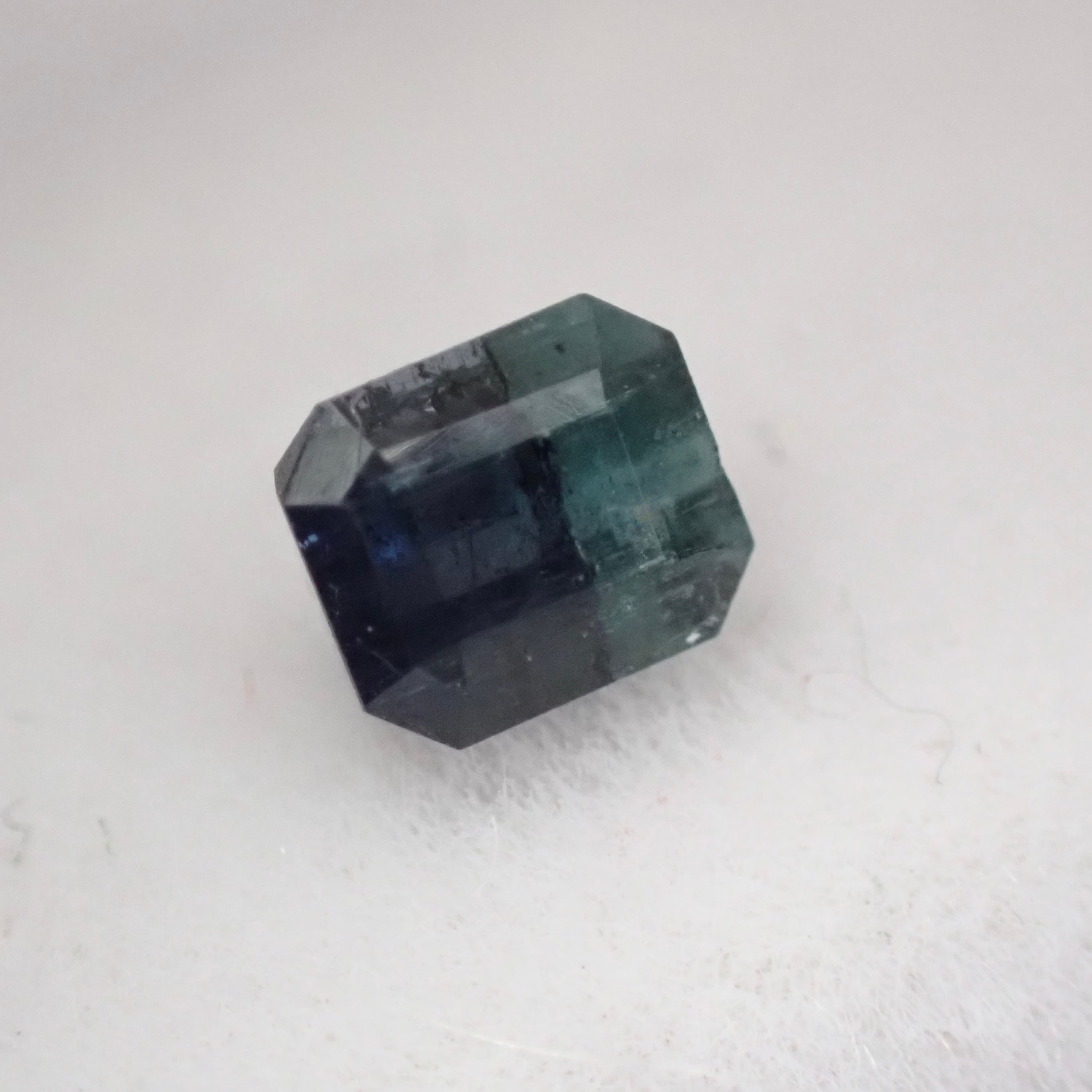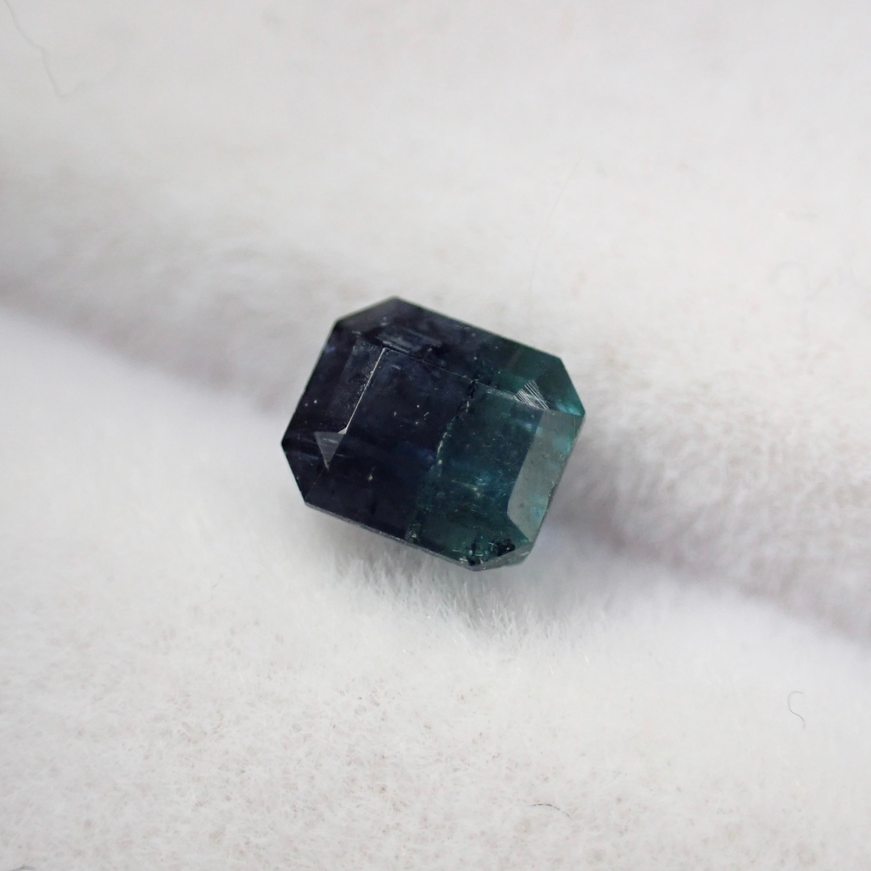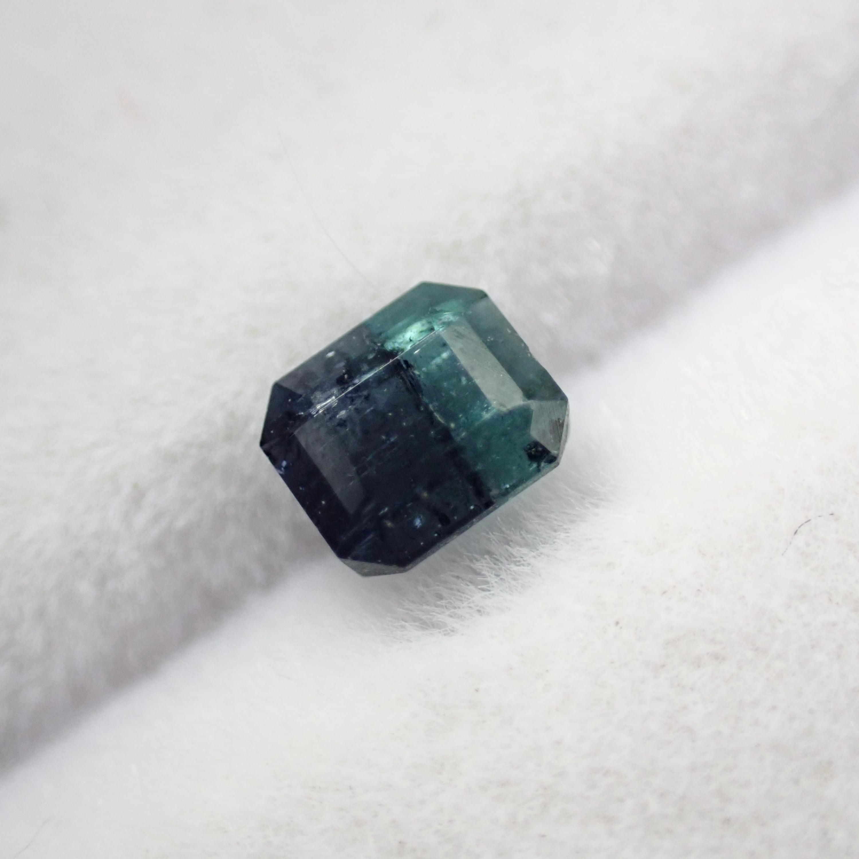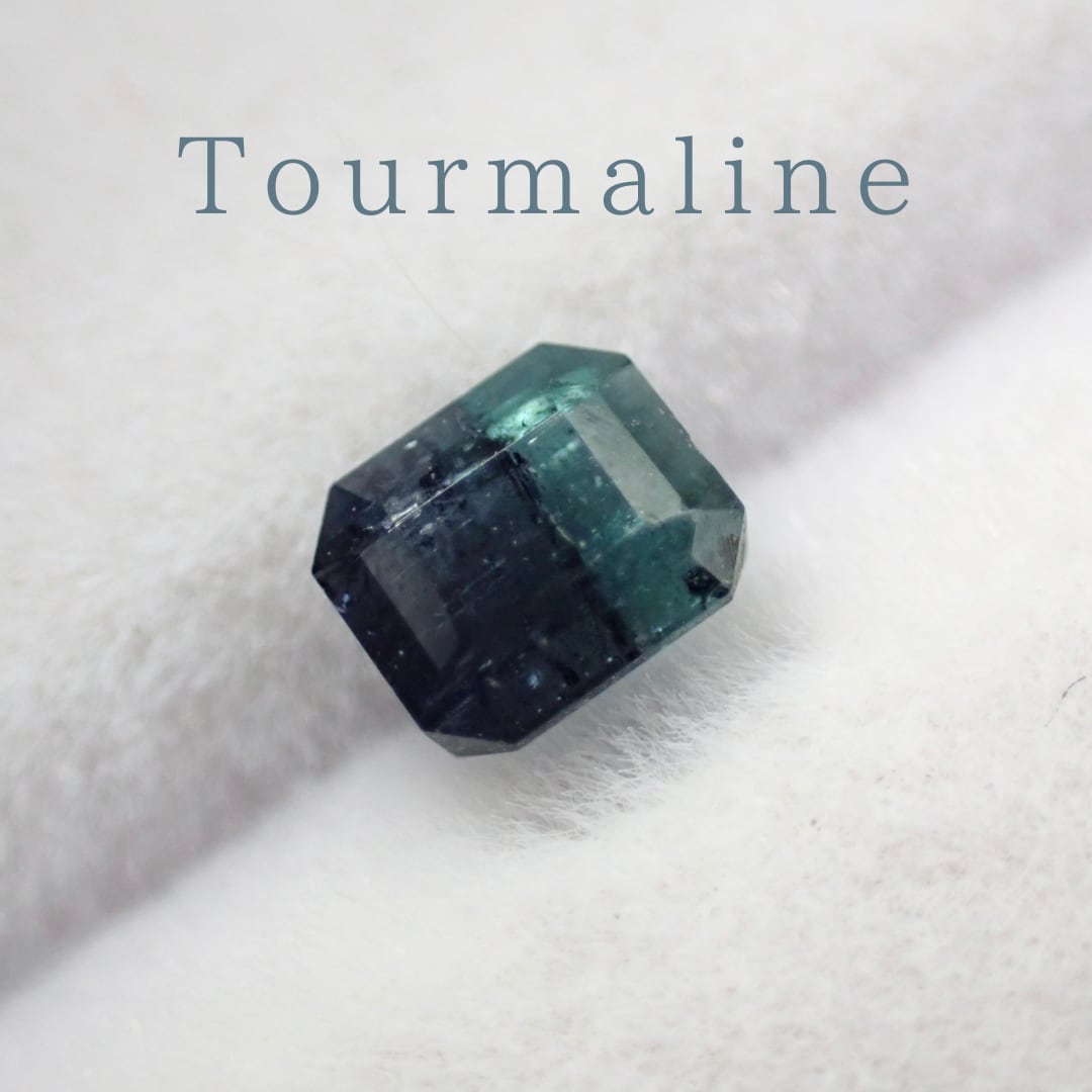 紺色に近いブルーと、ややグリーン味を帯びたブルーが並ぶバイカラートルマリン。